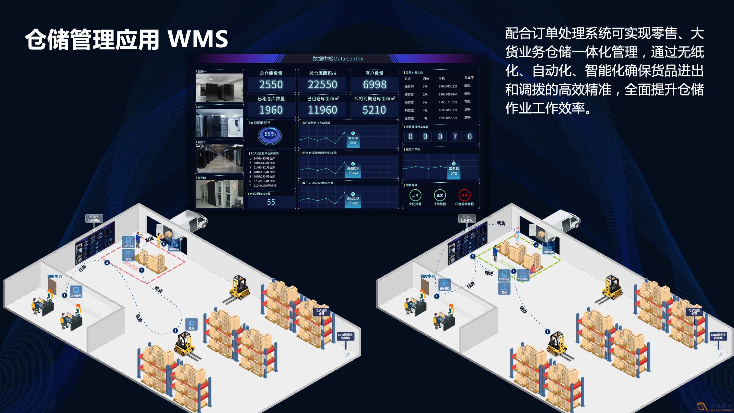 倉儲管理是直接影響貨運物流效率與品質的關鍵步驟,倉儲物流信息化也成為了提升物流企業管理運行效率的必需方式。由于電商的飛速發展,很多泛娛樂化訂單信息的發生,讓傳統的倉儲物流的監管和運作方式已不能滿足貨運物流運行的必須。物流倉儲領域已從勞動密集型向技術密集型轉變,從舊模式向智能倉儲物流轉變,加快物流企業流動性管理,降低公司運營成本。成都安防工程公司帶你了解智慧物流倉儲可視化,讓我們和低效率說拜拜!